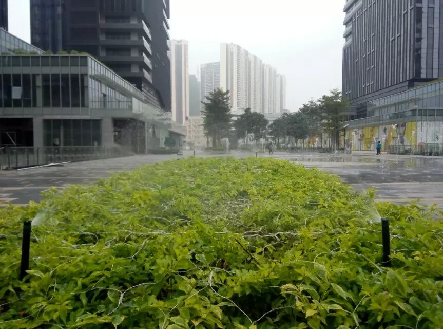 下圖為華為在天安云谷的辦公場(chǎng)所,其樓前草坪及樓層平臺(tái)綠化灌溉均采用了亨特灌溉系統(tǒng)。
