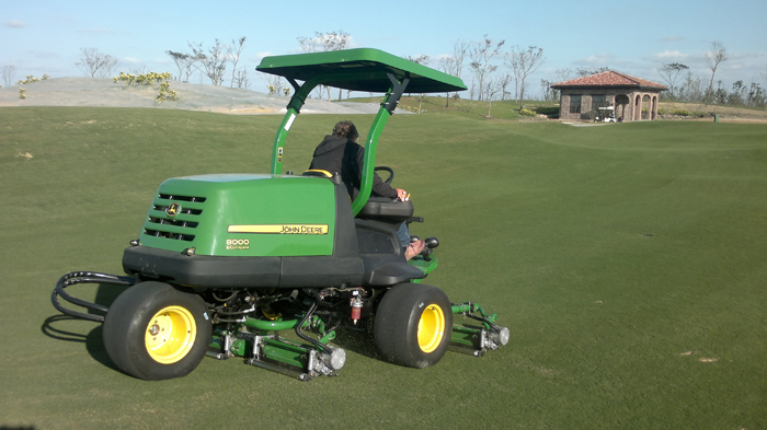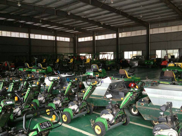為打造頂級錦標(biāo)賽事球場,從設(shè)計(jì)建造至今,覽海國際高爾夫俱樂部配備了綠友提供的草坪養(yǎng)護(hù)設(shè)備,一應(yīng)俱全。高端上檔次的配置,為日后草坪的養(yǎng)護(hù)提供了堅(jiān)強(qiáng)的保障,其中美國迪爾公司的8000E混合動力坐騎式五聯(lián)球道剪草機(jī)就成了其中的一大“功臣”。18英寸QA5刀組,兼?zhèn)湎冗M(jìn)的油電混合技術(shù),起早摸黑,征服了連綿起伏的球道,贏得了俱樂部草坪總監(jiān)及其團(tuán)隊(duì)的一致肯定。馳騁美巡,盼其再續(xù)輝煌征程。