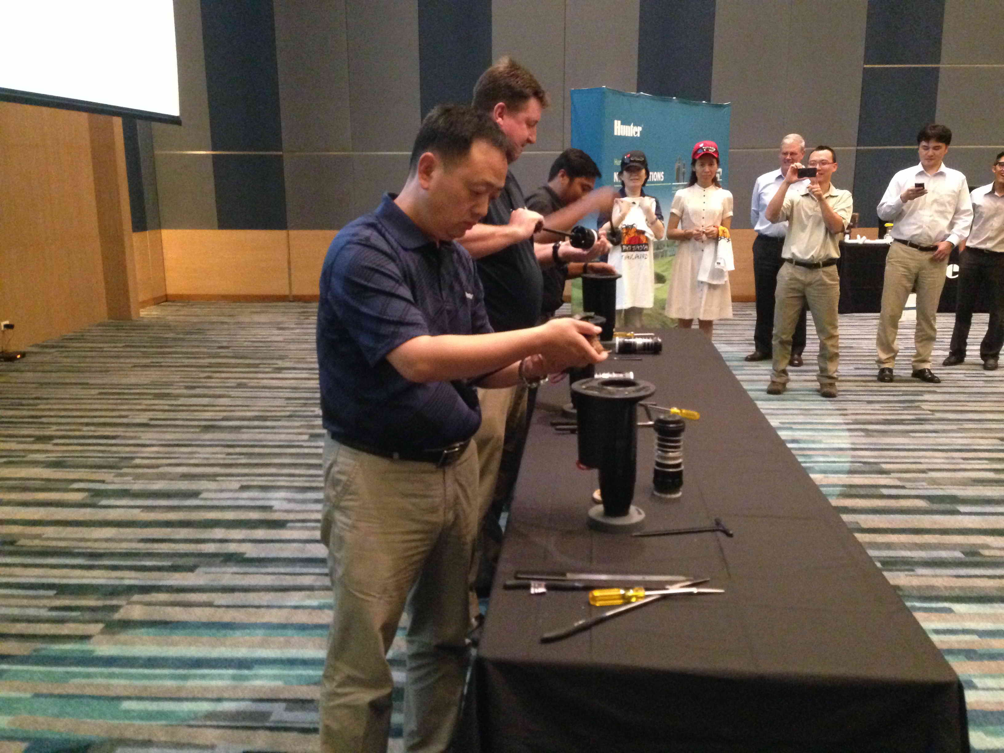 2014年5月6~9日,美國亨特(HUNTER)實業(yè)公司在泰國舉辦了“2014年亞洲經銷商大會”。亨特(HUNTER)公司副總裁Barry Pedler先生、HUNTER亞太區(qū)經理Mike Steele先生等相關負責人主持了會議,中國、日本、韓國、越南等國銷售代表參加了大會。中國方面有亨特公司中國首席代表伊志謙先生、綠友集團副總裁劉軍先生以及安悅女士、劉井忠先生、謝海燕女士等銷售人員參加了大會。HUNTER公司的有關負責人為大家做了亞洲市場銷售趨勢分析報告,各個國家的銷售代表都分享了各自的銷售經驗。大會還做了新產品培訓以及實際操作演練。