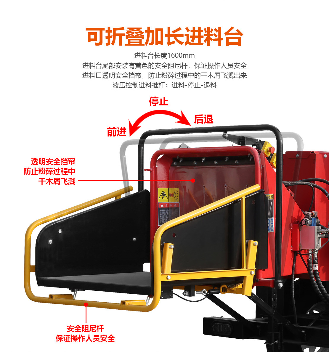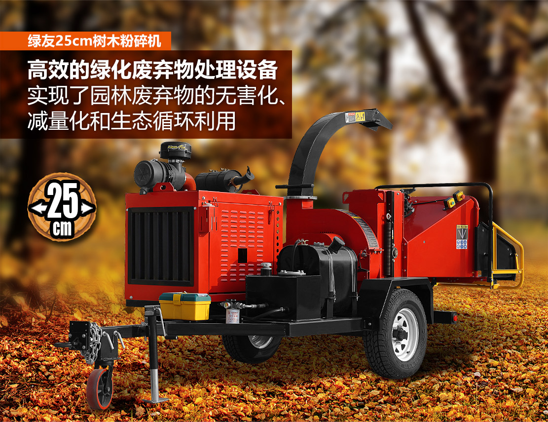 25cm全自動液壓進料粉碎機,選用49馬力環(huán)保柴油發(fā)動機。