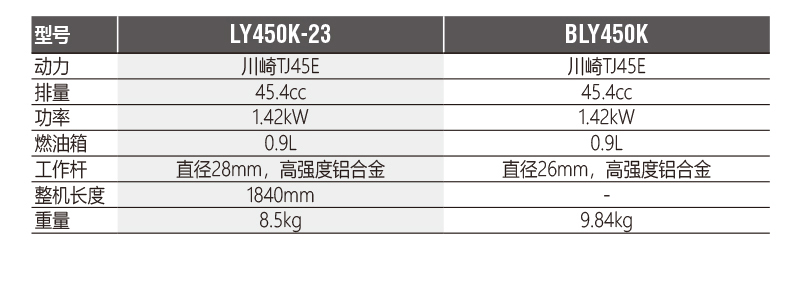 LY450K 是一款商用型割灌割草機(jī),搭載了川崎T(mén)J45E, 45.4cc大排量發(fā)動(dòng)機(jī),保證了工作的高效、快捷。